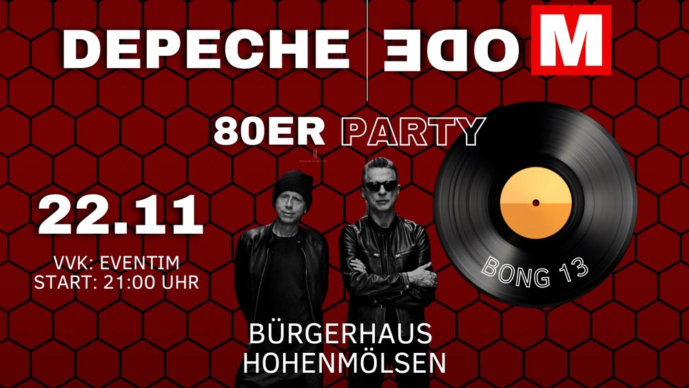 Dieses Jahr lädt das Bürgerhaus zum legendären Party-Happening und öffnet die Tore für Depeche Mode Fans aus ganz Deutschland. Wer die hartgesottenen Fans kennt, weiß, dass sie eigentlich keinen Grund zum Feiern brauchen. Ihr Kult ist Antrieb genug um den Abend in ein ekstatisches Fest zu verwandeln. Aus gutem Grund, schliesslich kommen sie mit Depeche Mode pur im Bürgerhaus voll auf ihre Kosten. Ein Muß für jeden Depeche Mode Fan!