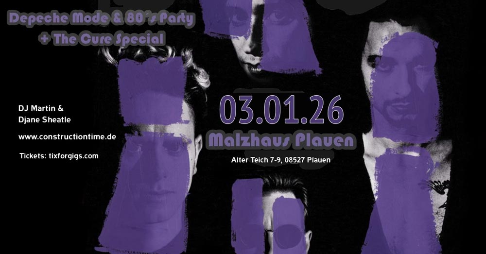 Auch in diesem Jahr wird gleich am ersten Samstag im neuen Jahr im Malzhaus Plauen eine „Depeche Mode & 80s Party + The Cure Special“ gefeiert. Natürlich kommen, wie immer, auch einige E.B.M. & Synthie Pop Klassiker. Ansonsten alles aus über 40 Jahren Depeche Mode + die collsten 80s/The Cure Kracher. Was mit Video geht, wird auch auf Videoleinwand synchron in Bild und Ton gezeigt.
