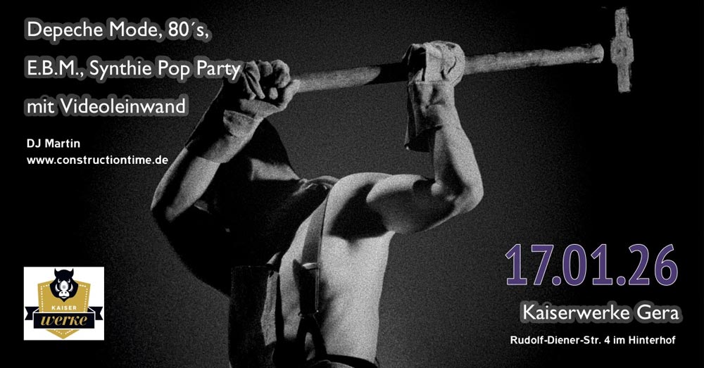 Nach einer kleinen Pause möchten wir am 17.Januar 2026 mal wieder mit euch eine Depeche Mode, 80s, E.B.M., Synthie Pop Party feriern. Was auf Video verfügbar ist, läuft auch synchron in Bild und Ton auf der großen Videoleinwand. Tickets im vergünstigten VVK gibt es wie immer bis zum 16.01.2026 direkt über die Kaiserwerke. Wir freuen uns auf euch!