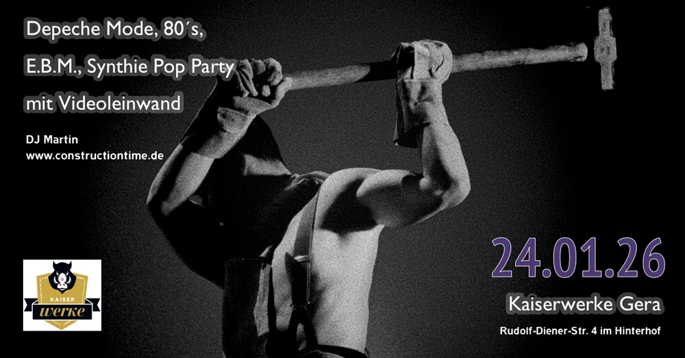 Nach einer kleinen Pause möchten wir am 24.Januar 2026 mal wieder mit euch eine Depeche Mode, 80s, E.B.M., Synthie Pop Party feriern. Was auf Video verfügbar ist, läuft auch synchron in Bild und Ton auf der großen Videoleinwand. Tickets im vergünstigten VVK gibt es wie immer bis zum 24.01.2026 direkt über die Kaiserwerke. Wir freuen uns auf euch!
